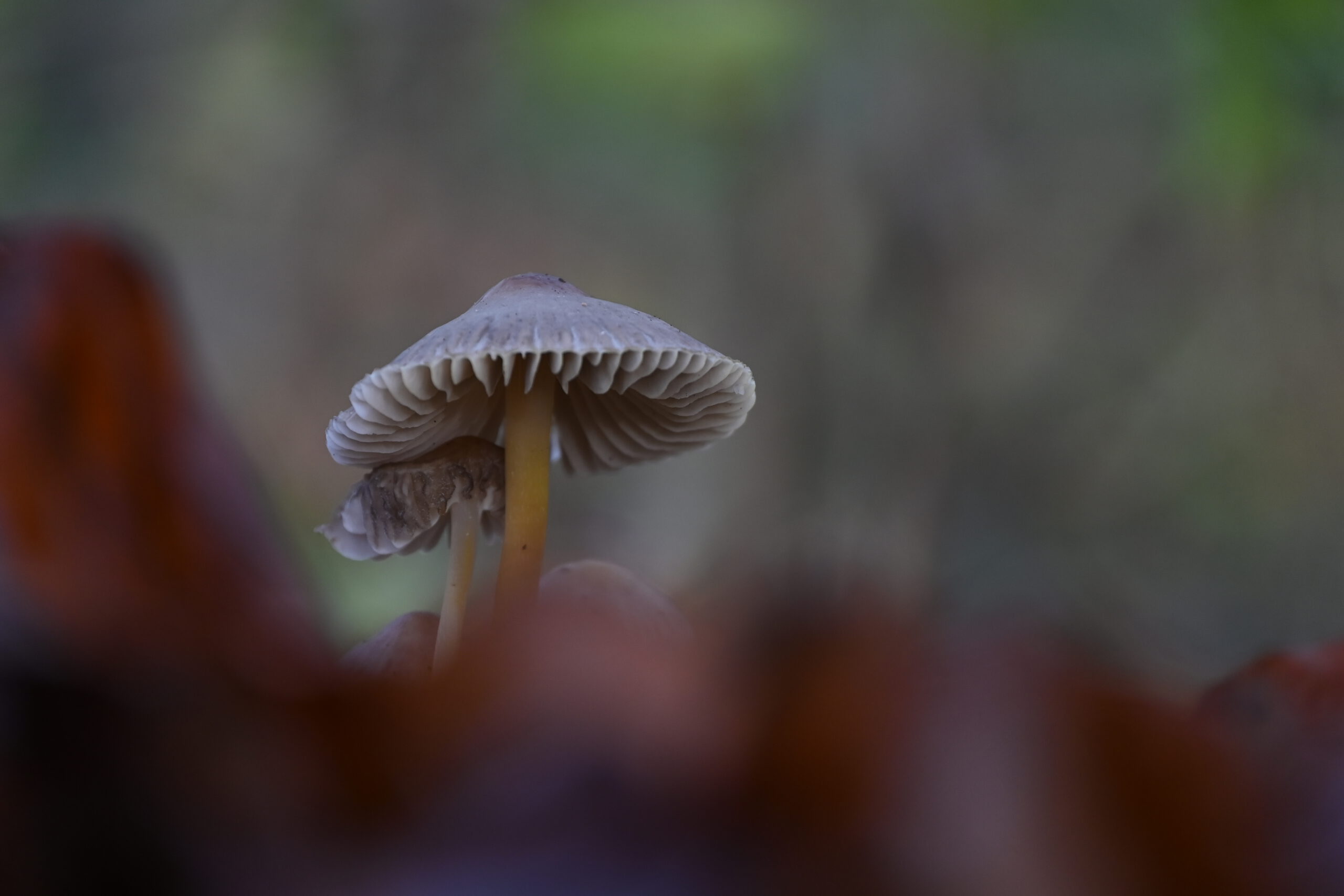 Paddenstoel heel laag gefotografeerd.